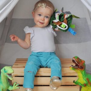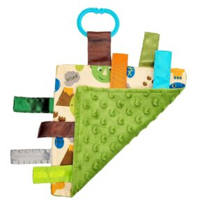 Baby Sensory Crinkle & Teething Square Lovey Toy with Closed Ribbon Tags for Increased Stimulation: 8″X8″ (Dinosaurs)