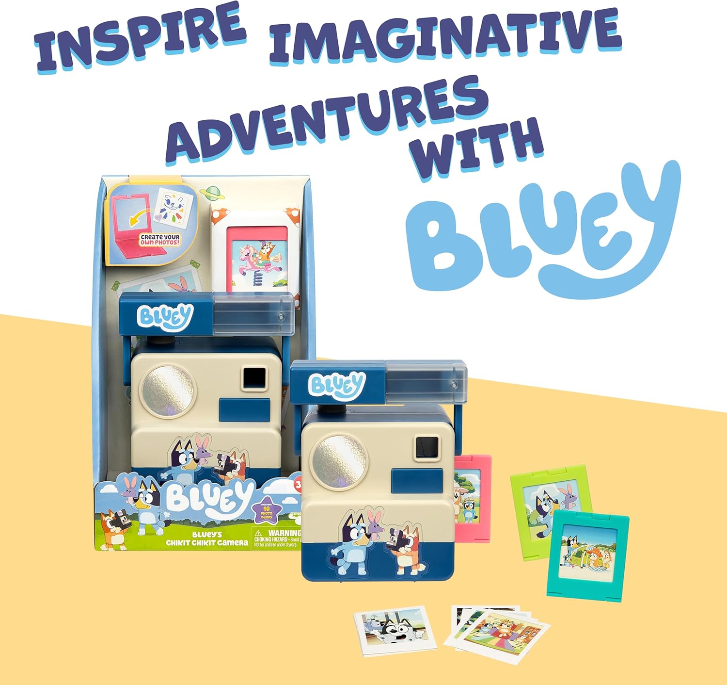 Bluey Chikit Chikit Pretend Camera, Role Play Toy Camera for Kids with 10 Photo Cards, 3 Pop-Out Film Cartridges, Toddler Toys Playset for Ages 3+