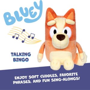 Bluey Sound Effects Talking Bingo Plush Toy, 13\u201D Soft Bingo Toy, Interactive Stuffed Animal with 9 Different Phrases, Musical Toys for Kids