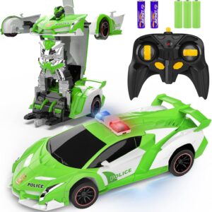 This wonderful robot racing car has much cool design for fun, such as a 360-degree rotation roller and bright LED police light, which gives kids a better playing experience, and it is very easy to operate.