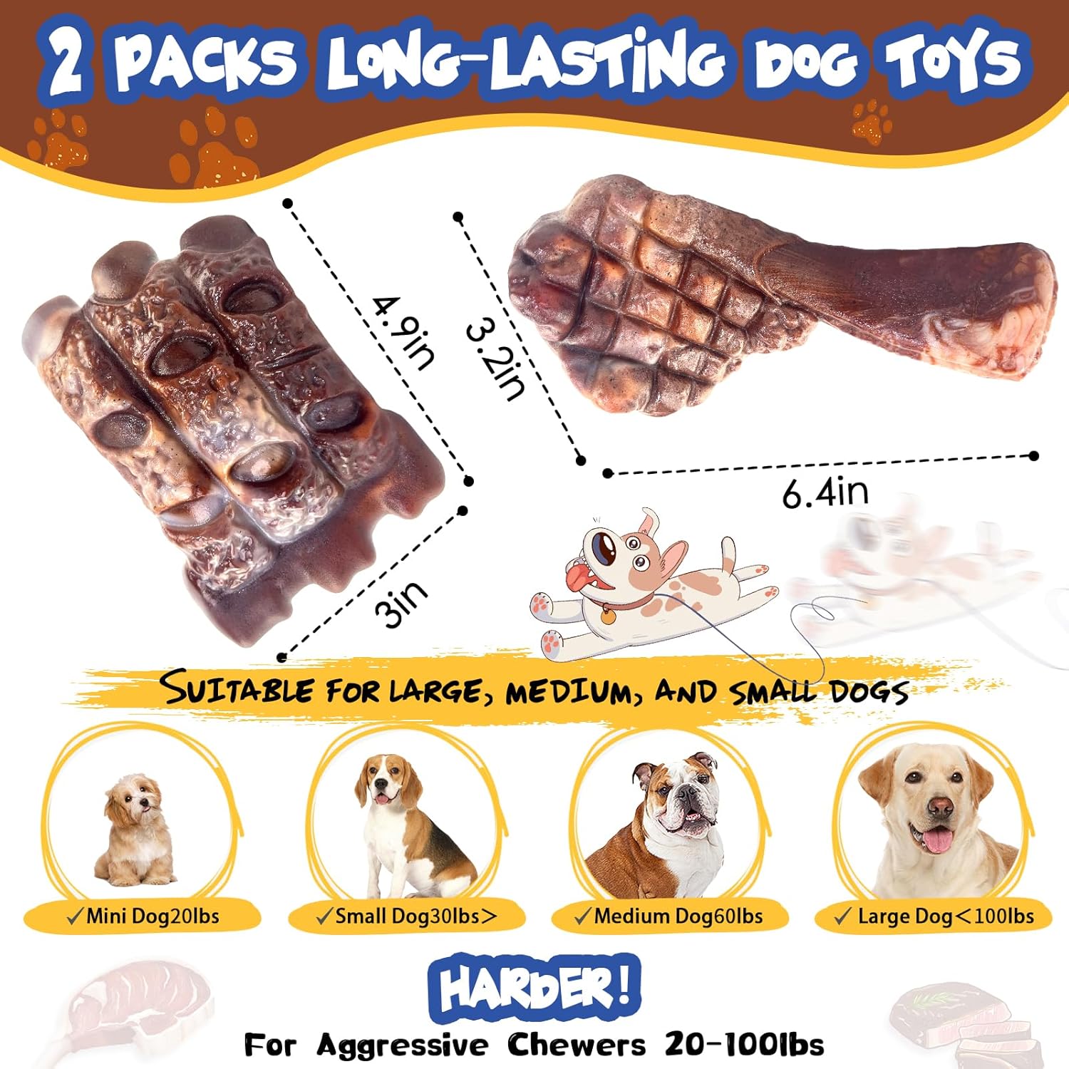Fuufome Dog Chew Toys for Aggressive Chewers:2 Pack Indestructible Dog Toy for Large Breed- Tough Nylon Teething Bone Toy to Keep Them Busy