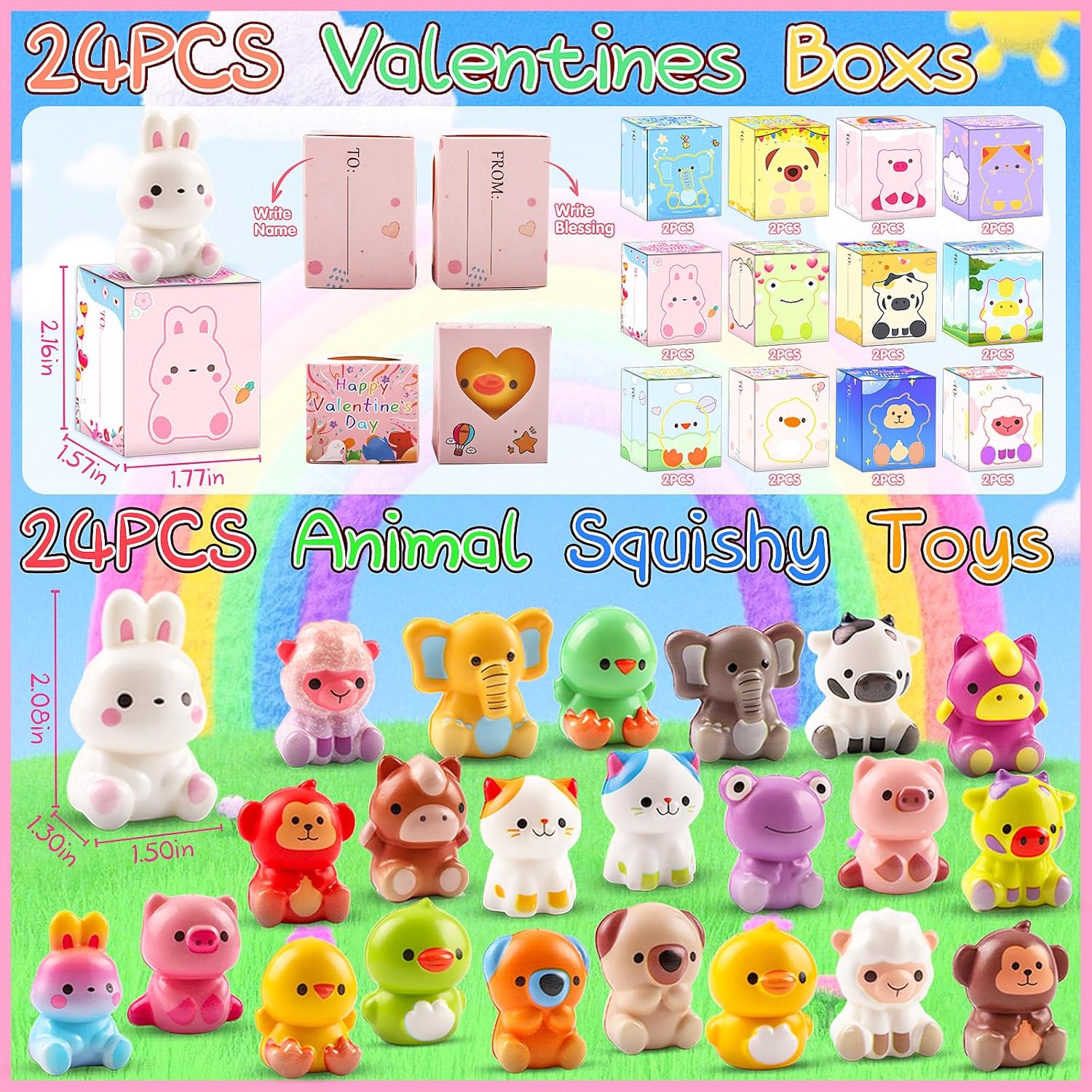 KissFuture Valentines Day Gifts for Kids 24PCS Animal Squishy Toys, Slow Rising Stress Relief Toys, Goodie Bag Stuffers, Party Favors for Classroom Prizes