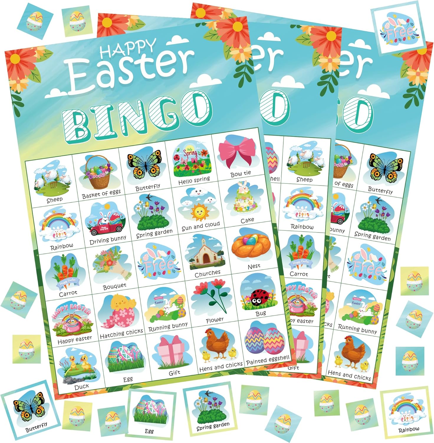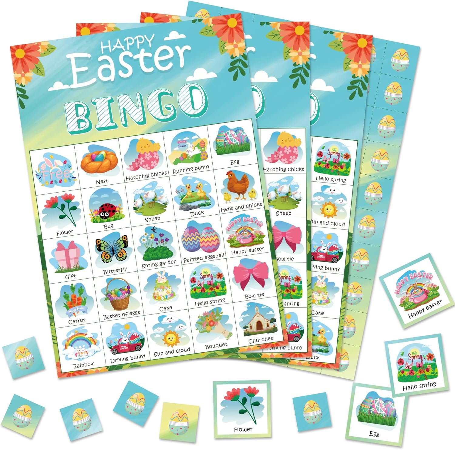 OHOME Easter Bingo Games for Kids Basket Stuffers | Easter Crafts Toys for Boys Girls Adults Teens,Classroom Activities Gifts Party Favors – Easter Basket Essentials (24 Players)