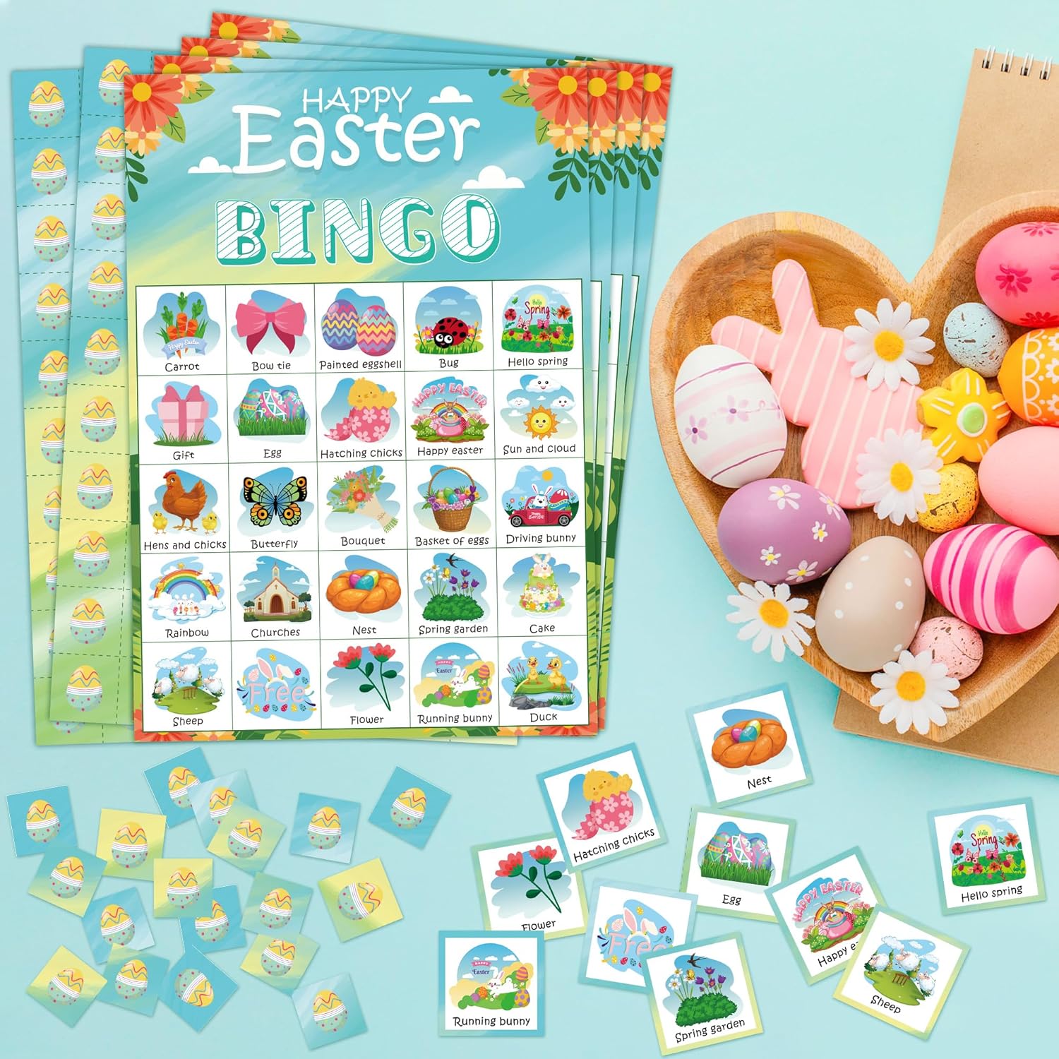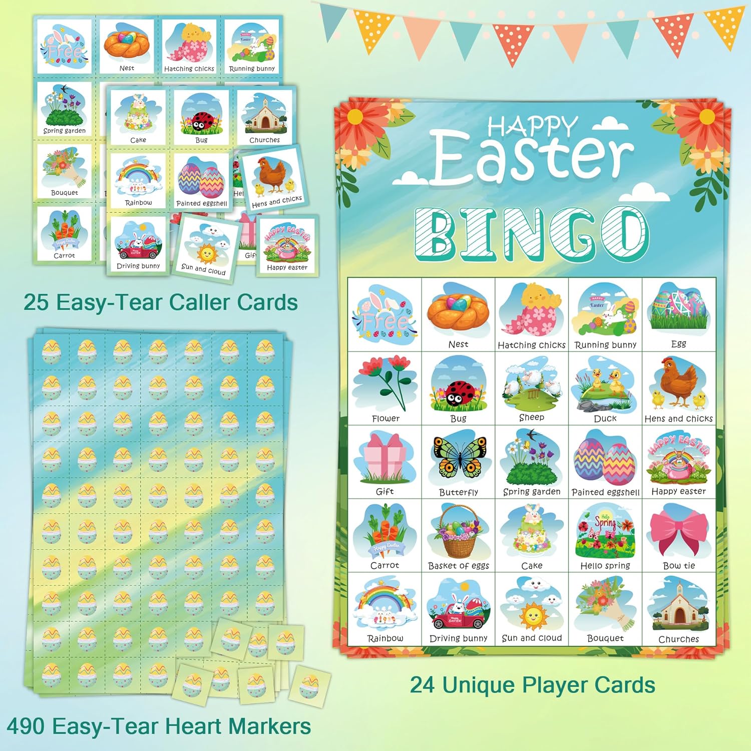 OHOME Easter Bingo Games for Kids Basket Stuffers | Easter Crafts Toys for Boys Girls Adults Teens,Classroom Activities Gifts Party Favors - Easter Basket Essentials (24 Players)