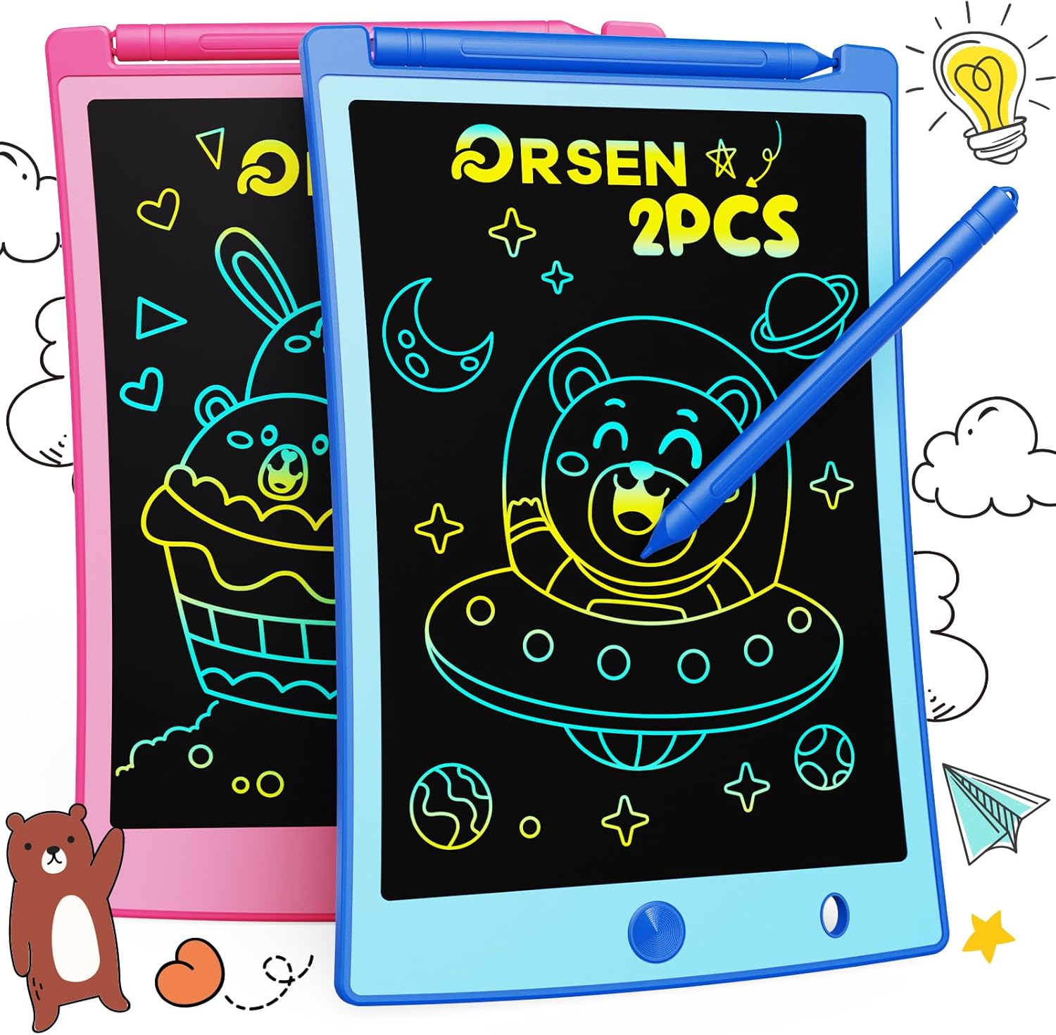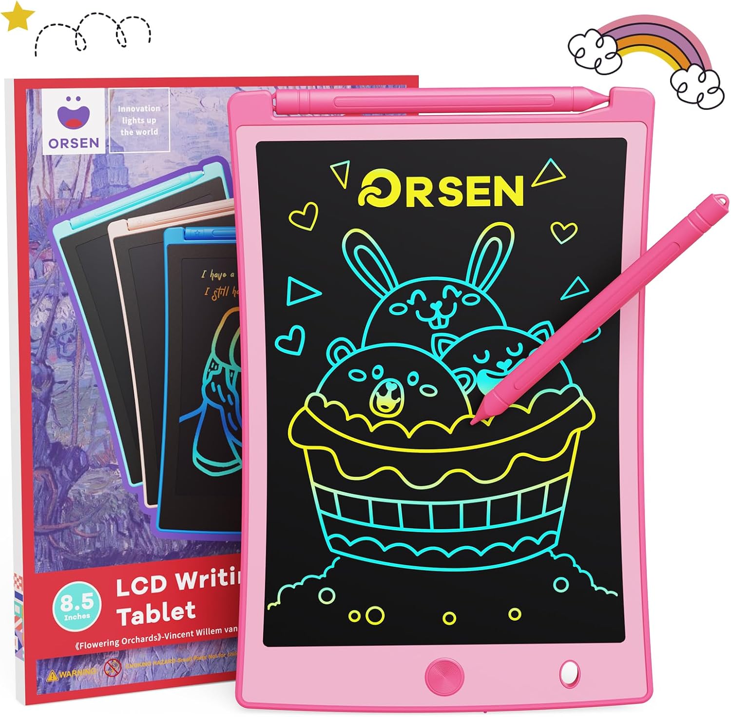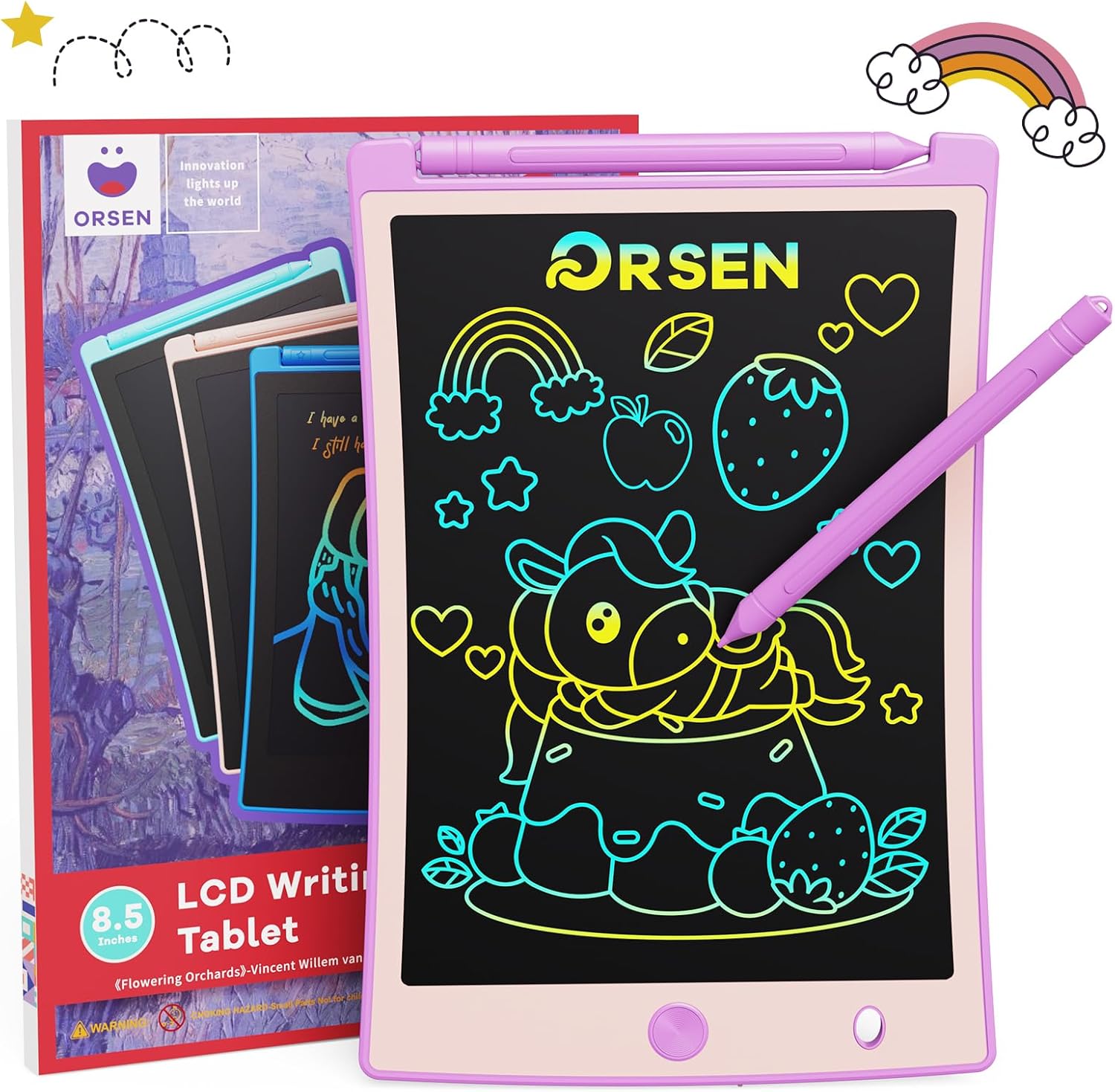ORSEN Colorful 8.5 Inch LCD Writing Tablet for Kids, Electronic Sketch Drawing Pad Doodle Board, Toddler Easter Basket Stuffers Toys Activity Games Birthday Gifts for 3 4 5 6 7 8 Year Old Girls