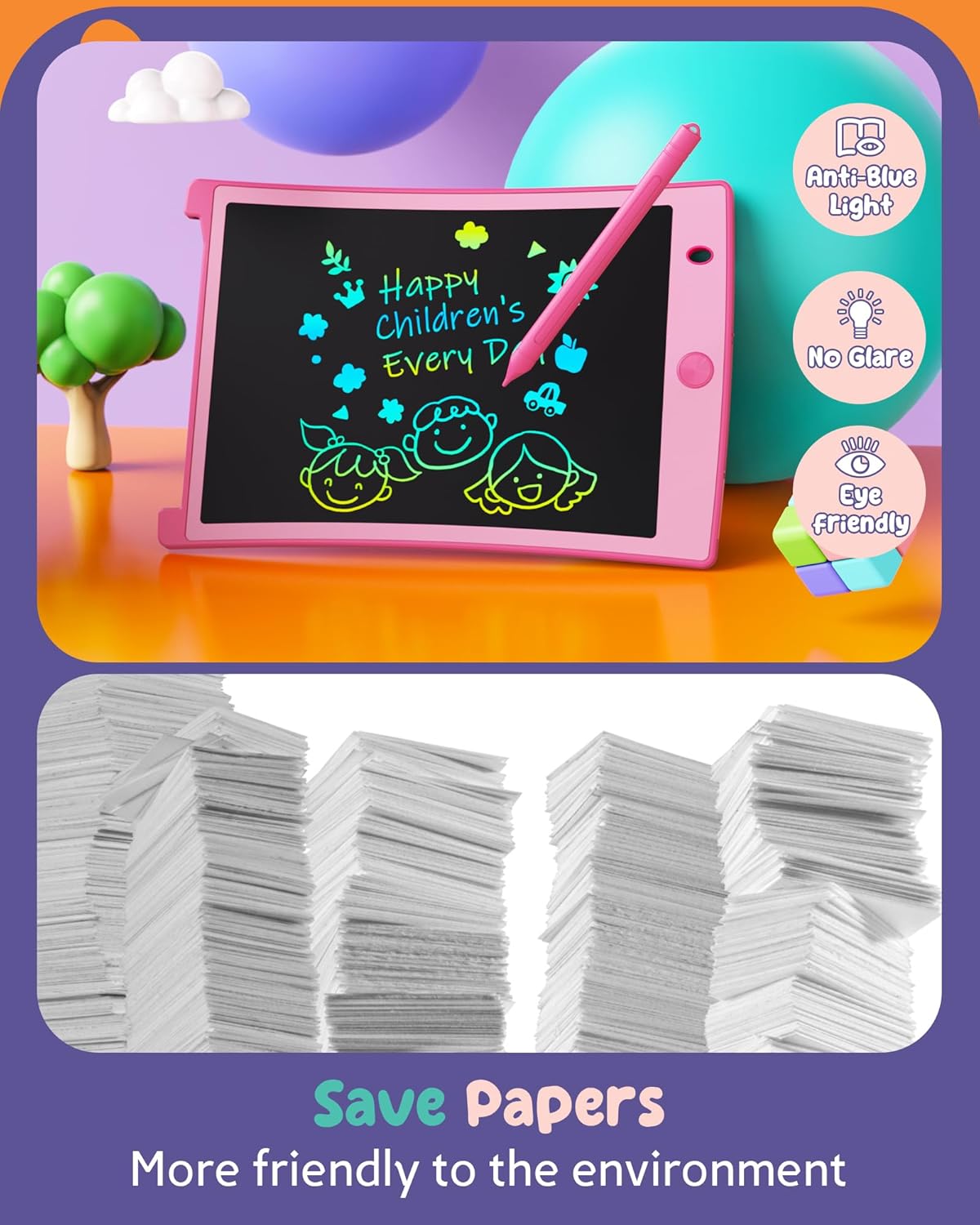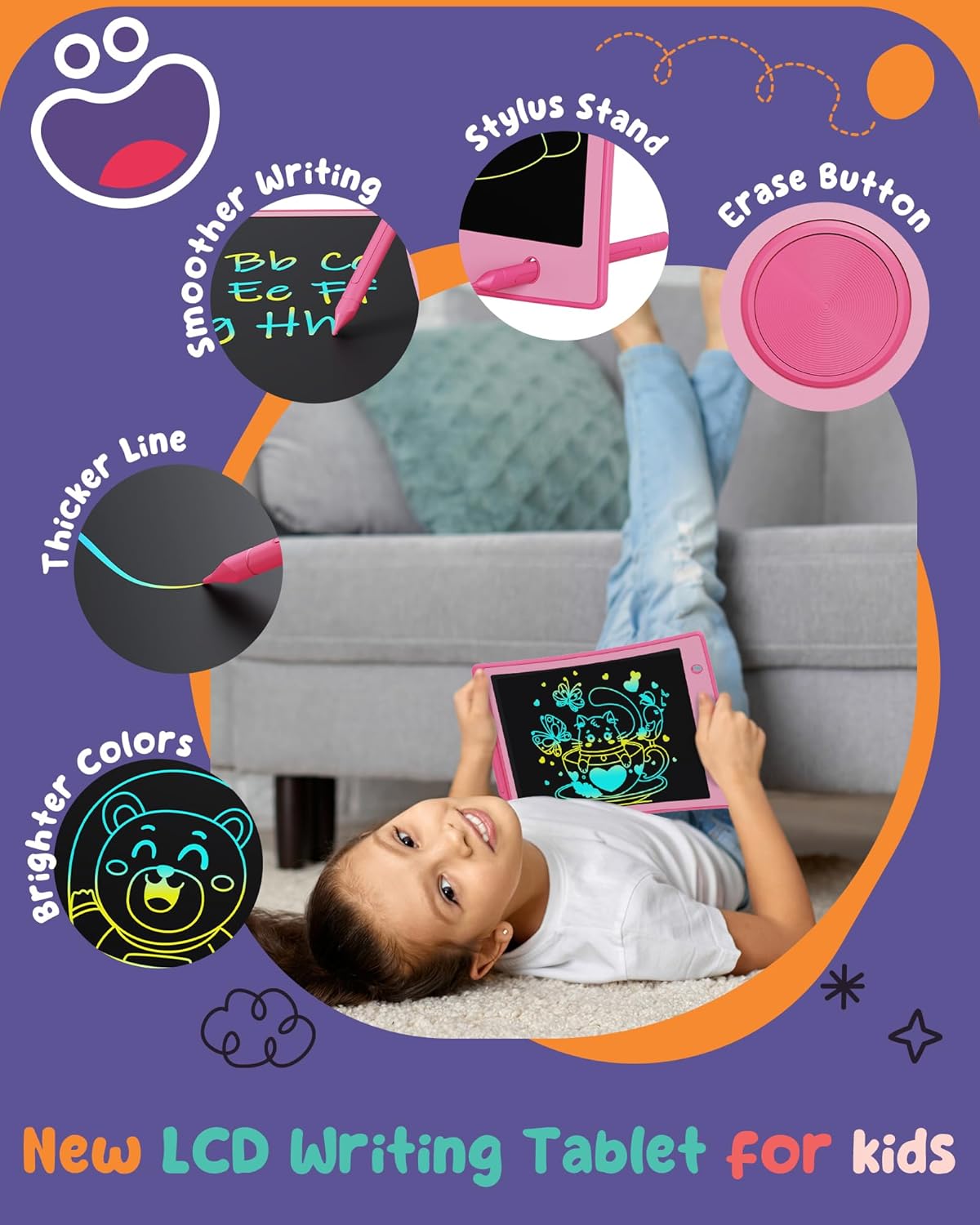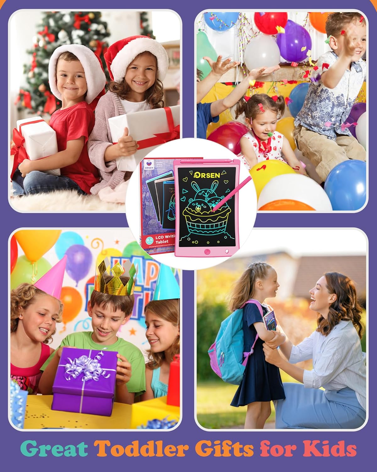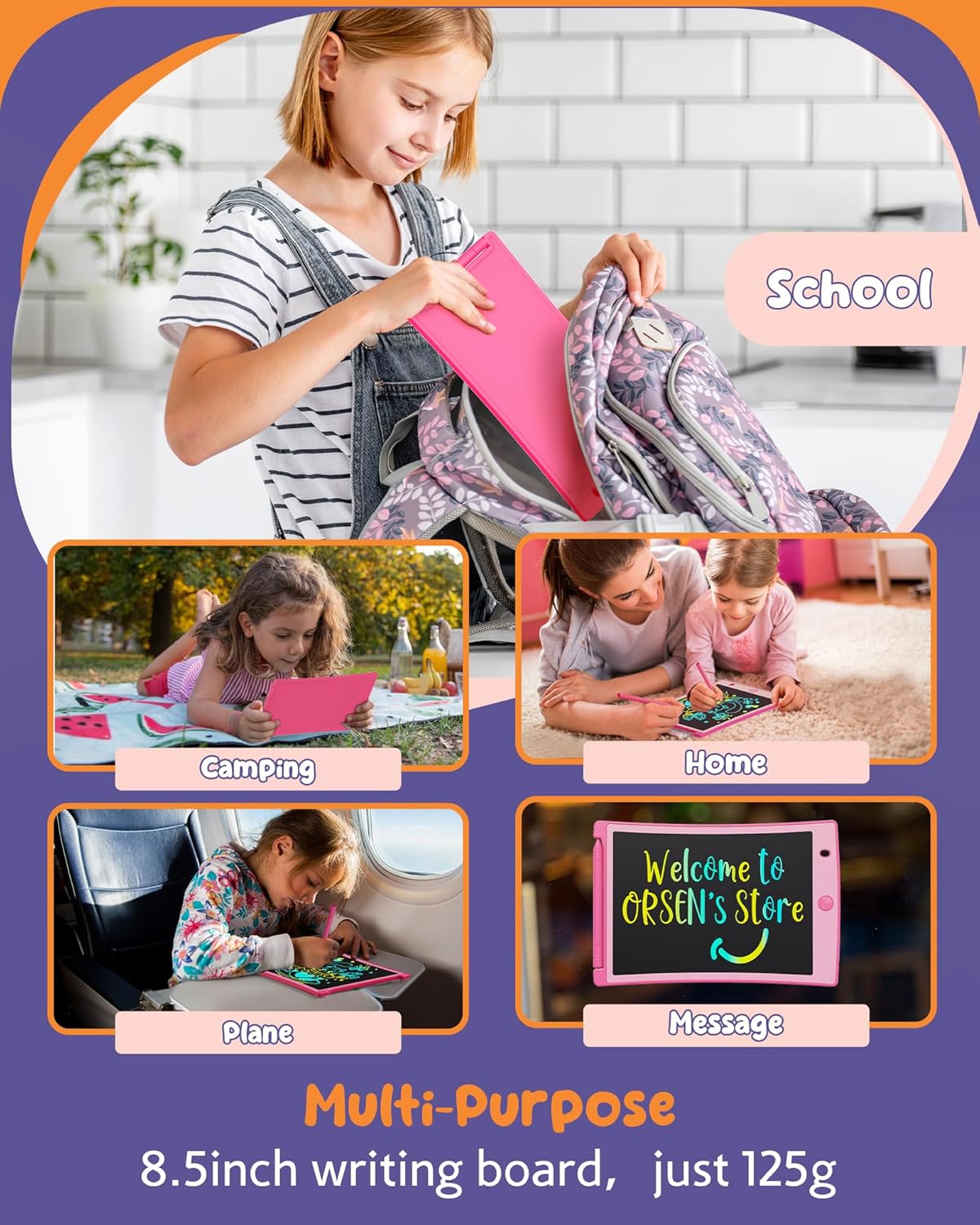 ORSEN Colorful 8.5 Inch LCD Writing Tablet for Kids, Electronic Sketch Drawing Pad Doodle Board, Toddler Easter Basket Stuffers Toys Activity Games Birthday Gifts for 3 4 5 6 7 8 Year Old Girls