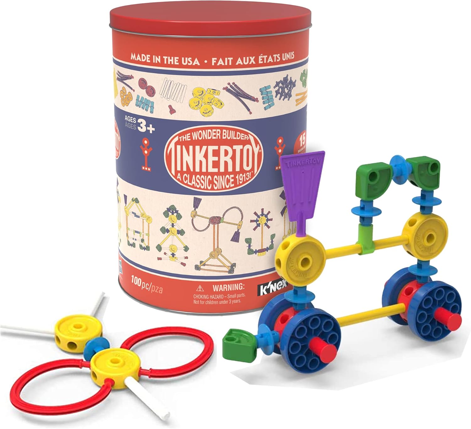 Rediscover the joy of creative construction with TINKERTOY, the iconic building set that has inspired generations of young builders. Designed to spark imagination and encourage hands-on learning, TINKERTOY sets combine high-quality wood and durable plastic pieces that easily snap together, making them perfect for little hands and growing minds. Whether kids are following step-by-step instructions or dreaming up their own creations, TINKERTOY fosters open-ended play that builds problem-solving skills, creativity, and a love for learning. Packaged in an authentic collectible tin, TINKERTOY blends nostalgia with innovative play, making it the ideal choice for families who value both tradition and discovery.