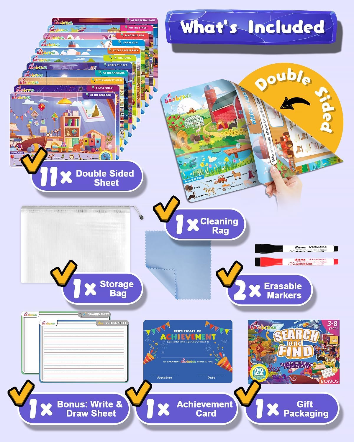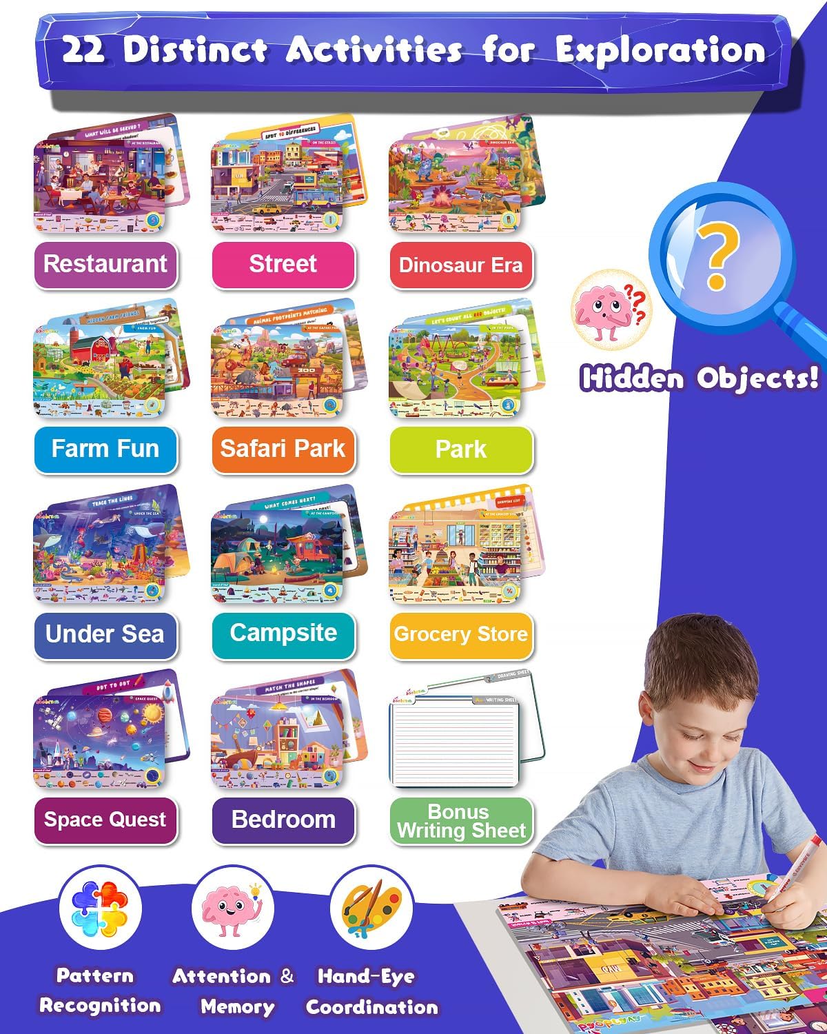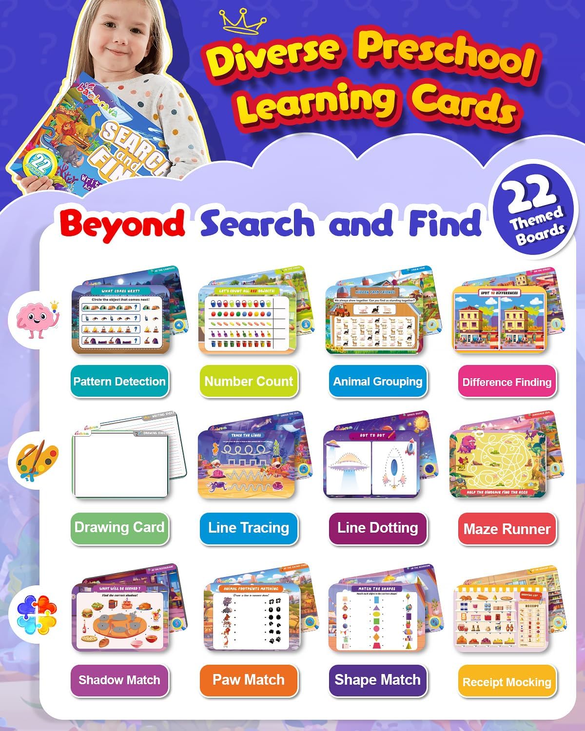 Search and Find: 22 Preschool Learning Activities for Kids 3-8 | Travel Games for Car and Airplane | Toddler Learning Toys | Board Games and Activitys Book for Kids | Back to School Gifts