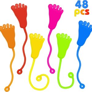 - There are 48 pcs of colorful sticky hand toy unique design and vivid color makes look so attractive, stretchy and slimy. Kids will love tossing & flinging them on the ceiling, walls, windows, tables & virtually any surface, variety of fun. You can share it with your friends. Perfect for birthday party favors for kids. Home essentials, parent-child games, games that the elderly, children, student, and adults can play.